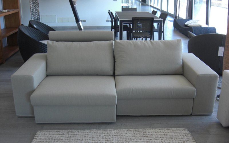 Divano DOIMO SALOTTI componibile ATLANTE con seduta scorrevole (+ 18 cm) e alzaschienale di serie (+ 10 cm H). Cm L 242 P103/121. Completamente sfoderafile. Rivestito in Tessuto Antimacchia, Lavabile in lavatrice, Anallergico, Antibatterico, Traspirante, Grande resistenza all’usura. Cuscini di seduta in poliuretano espanso, cuscini schienale misto piuma, reversibili. Prezzo di Listino € 2.834,00 - PREZZO SCONTATO DA ESPOSIZIONE € 1.680,00 (IVA compresa).